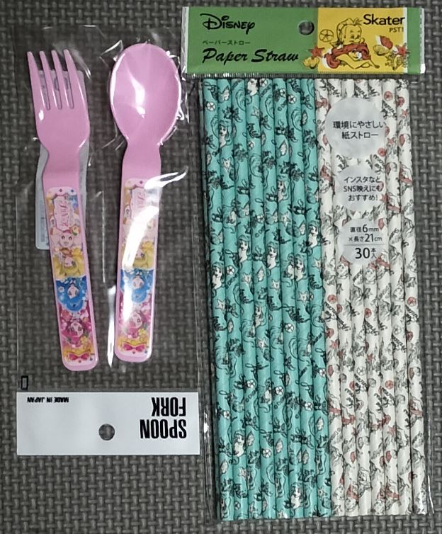 - 2個 まとめ売り 未開封 送料無料 紙ストロー ペーパーストロー リトルマーメイド ヒーリングっど プリキュア フォーク スプーン