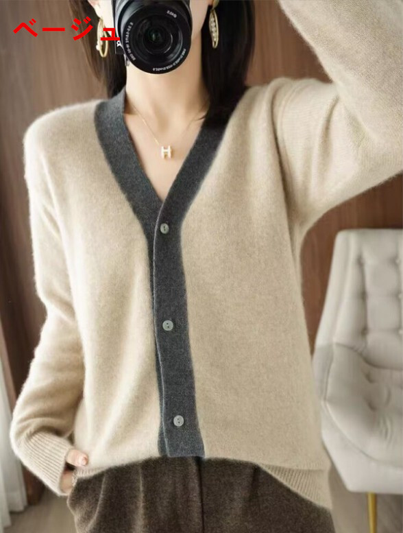 - レディース カーディガン 秋冬 ニットジャケットvネック ニットセーター アウター ショールカーディガ 羽織り ベージュフリーサイズ
