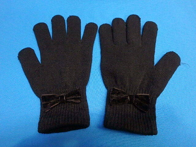 - nk14-25-0924-13 レディース 子供 手袋 リボン 黒 約19㎝ 小さめ 女性用 キッズ 中古