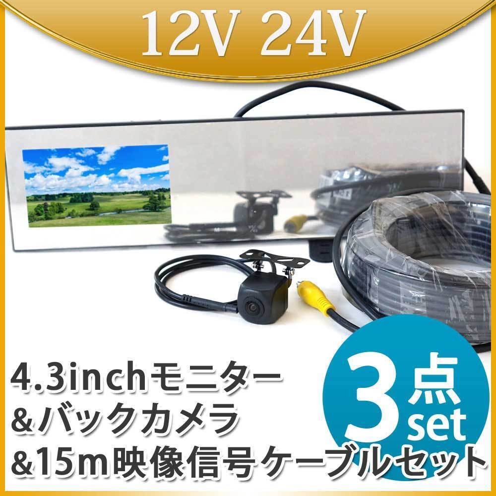 > ★4.3インチ バックミラーモニター バックカメラセット 15m延長ケーブルセット トラック 12V 24V 兼用 B3431C858BRCA15