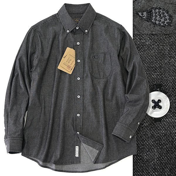 - 新品 チュウベイ シャンブレー ツイル ボタンダウン シャツ LL 黒 白 【CH1443204_99_LL】 秋冬 メンズ CHUBEI コットン ハリネズミ 刺繍