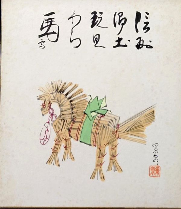 - D25100508〇彩色木版画画 色紙 信州わら馬 関景泉 昭和年代〇和本古書古文書〇和本古書古文書