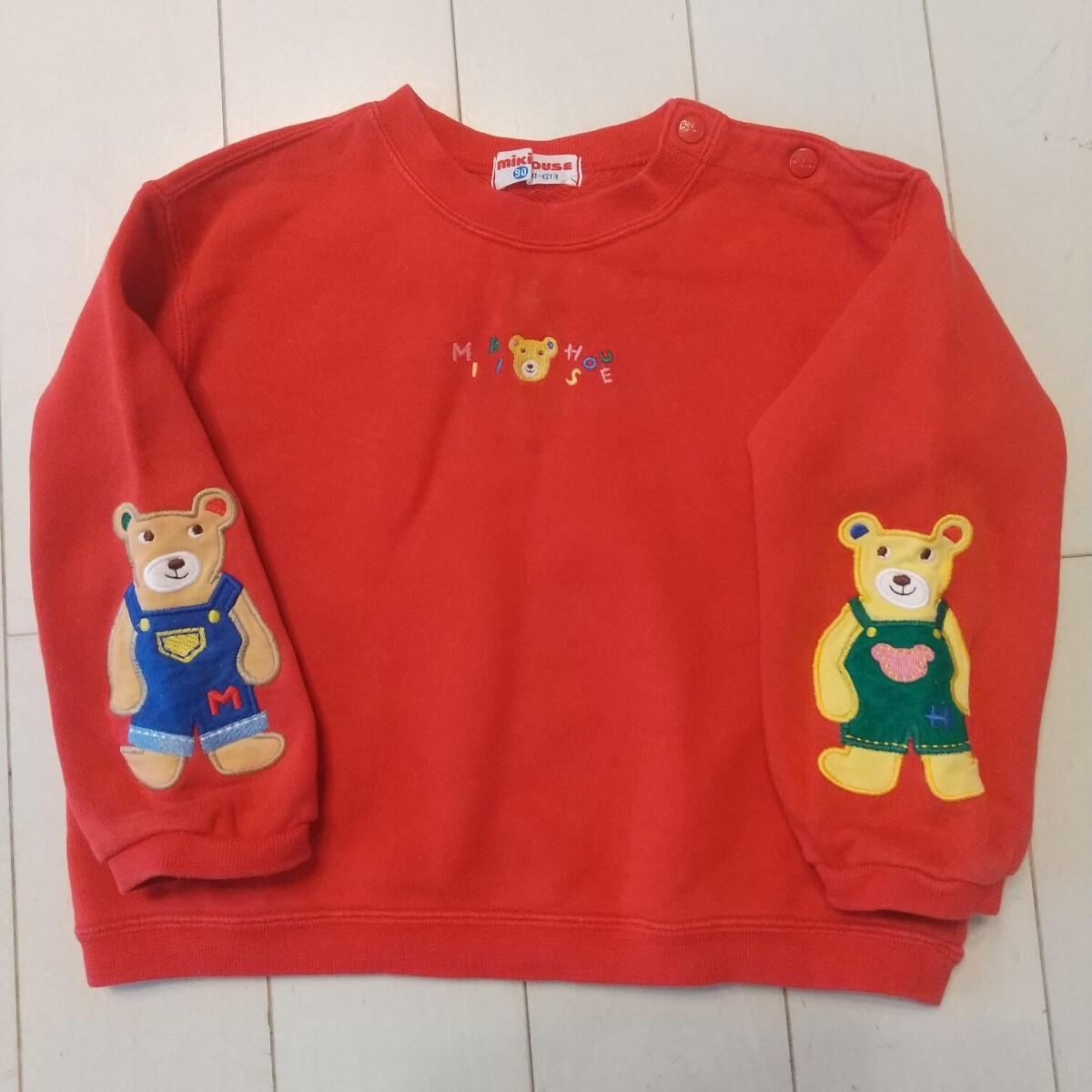 - 90 ミキハウス 袖オールドクマ トレーナー 赤