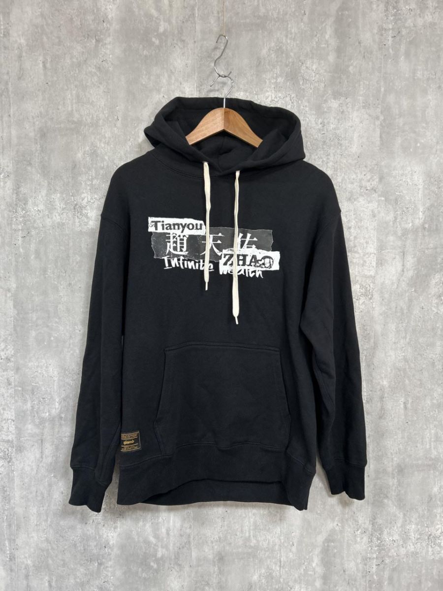 > glamb グラム 龍が如く コラボ バックプリント テンユウチョウフ−ディ プルオーバー パーカー 黒 ◆■◎ メンズ