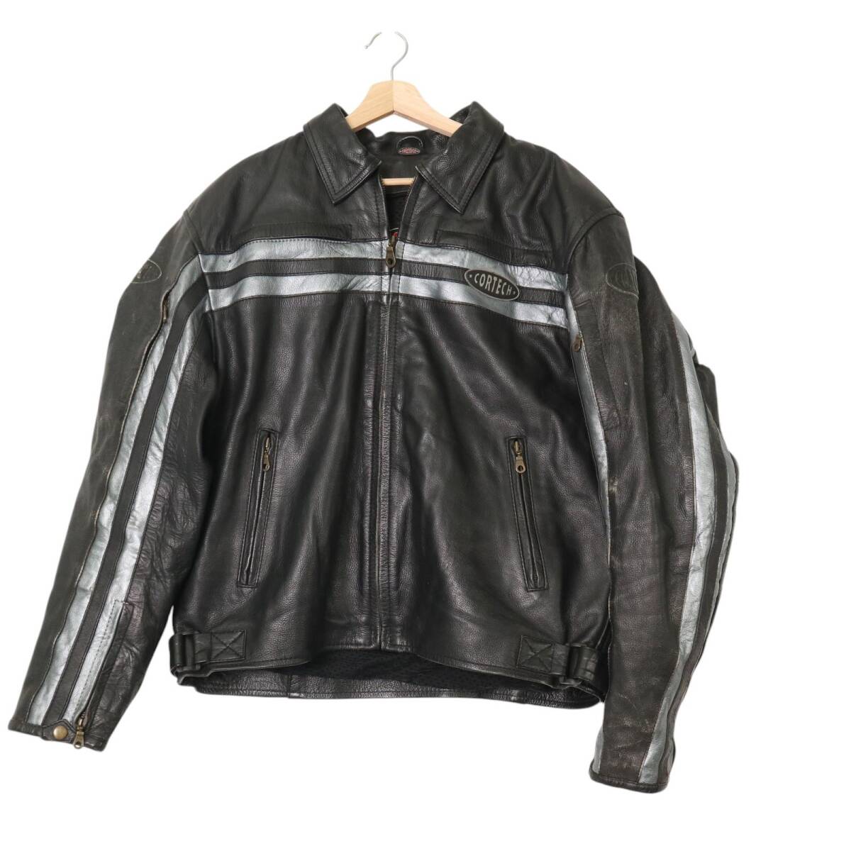 > CORTECH レザーライダースジャケット 大きいサイズ モーターサイクル ブラック(メンズ 2XL)中古 古着 A4973