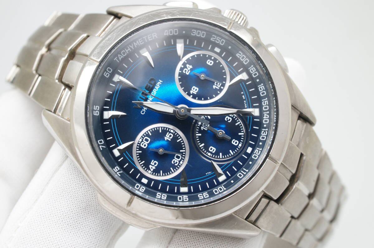 > J71●作動良好 SEIKO セイコー WIRED ワイアード クロノグラフ 4J41-0030 紺文字盤 ラウンド型 メンズ腕時計 シルバー お洒落 クォーツ