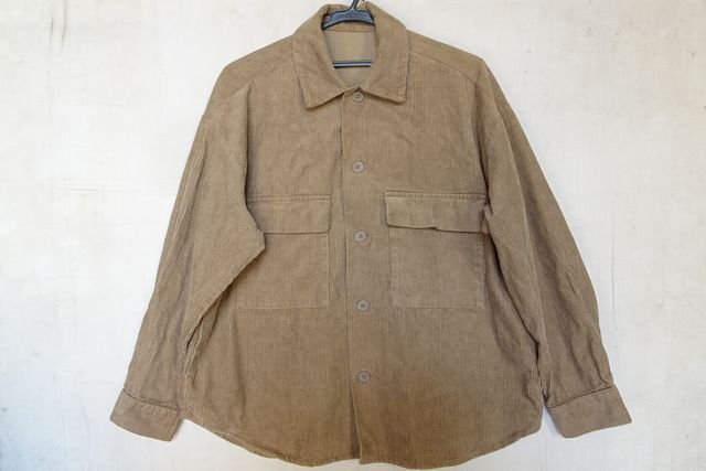 - GU/ジーユー/331-335422/コーデュロイCPOシャツ/長袖/フラップポケット/サイドポケット/オーバーサイズ/ベージュ系カーキ/Mサイズ(10/7R7)