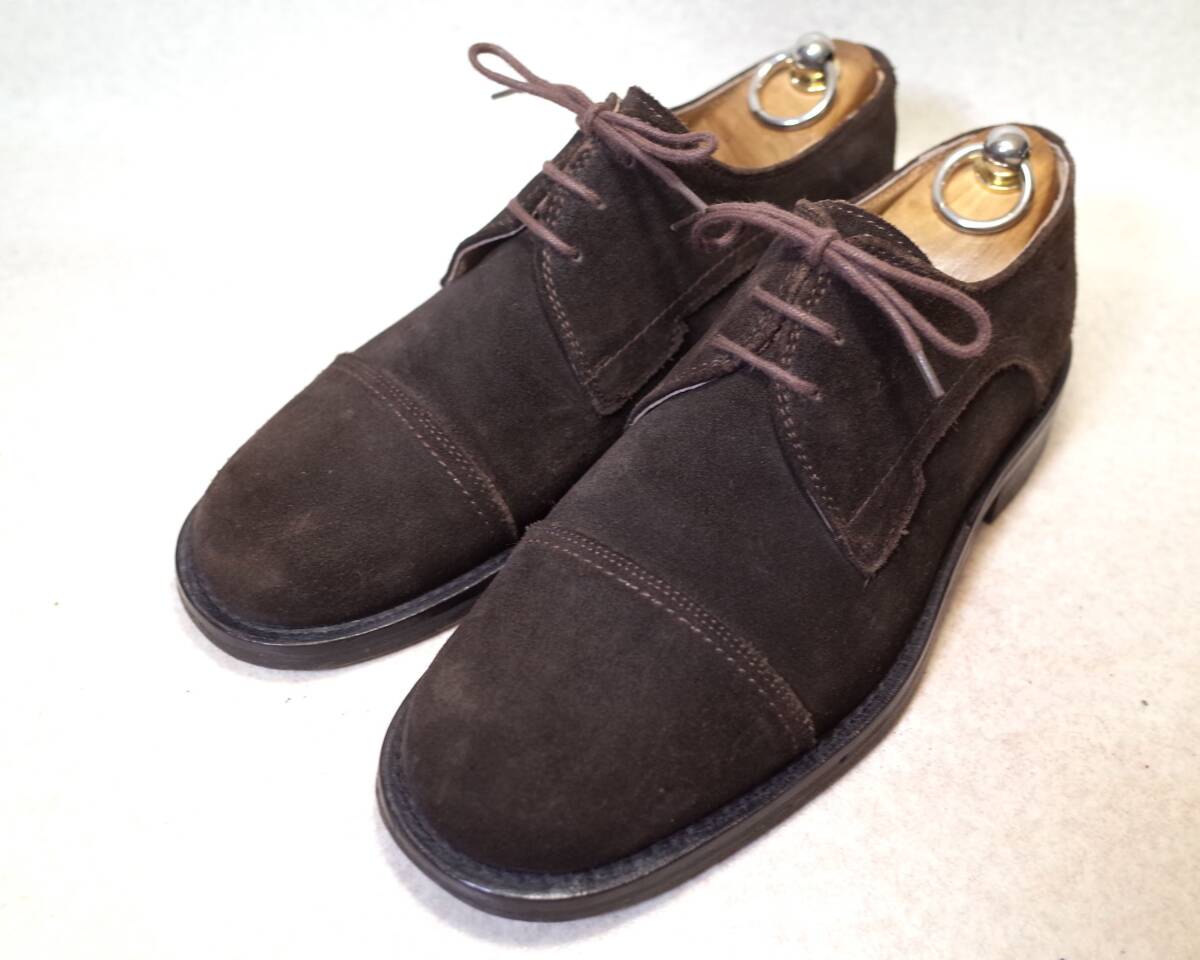 スエードレザーアッパー 外羽根3アイレット キャップトゥ/ストレートチップ。