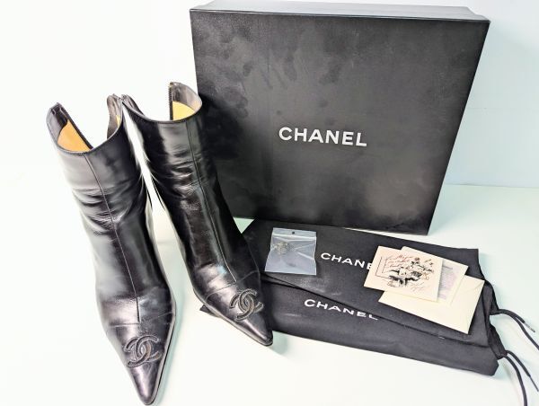 > CHANEL シャネル レザー ショートブーツ ココマーク 37 1/2 C ブラック系 レディース シューズ IT7U4S58O03K Z0