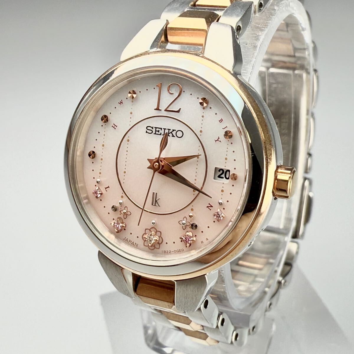 - 美品【稼働】SEIKO/セイコー LUKIA/ルキア 腕時計 電波ソーラー デイト クリスマス限定品 コンビ レディース ウォッチ 1B22-0CR0 ピンク
