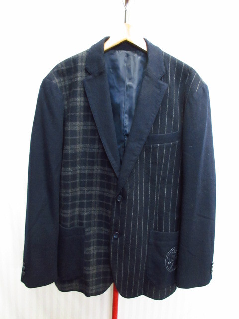 - カステルバジャック クレイジーパターン柄ウールジャケット メンズ50 LL XL 紺ブレザー ウールコート 秋冬向けテーラードジャケット10023