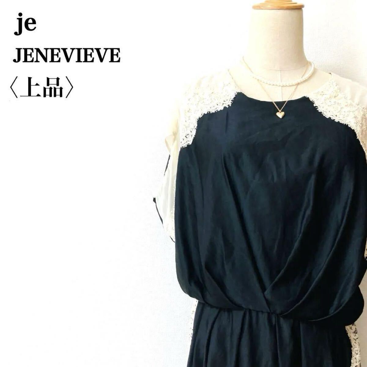 > T 上品 je JENEVIEVE ジェネヴィエーブ ひざ丈ワンピース 花柄レース刺繍 バイカラー ブラック 1 S