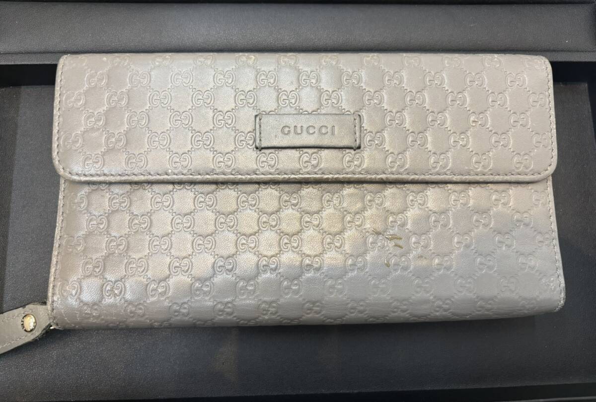 - 【現役!!1円スタート!!】グッチ GUCCI ロングウォレット 長財布 449364 マイクロシマ レザー グレー おしゃれ