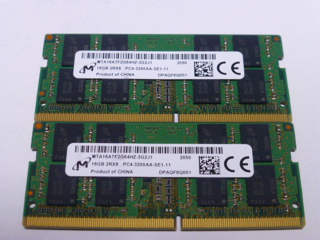 > メモリ ノートパソコン用 Micron 1.20V DDR4-3200 PC4-25600 16GBx2枚 合計32GB 起動確認済みです②