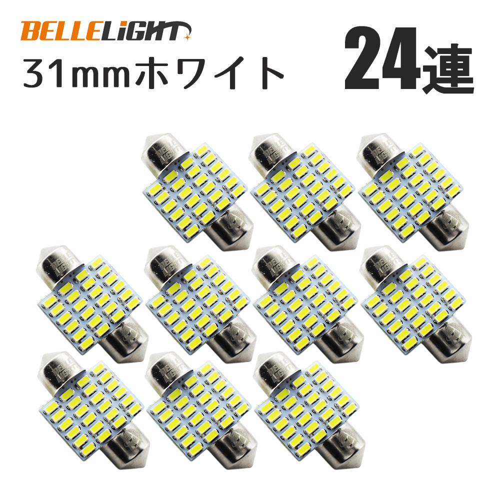 - 10セット T10×31mm LED 爆光ルームランプ 24連 白 無極性 ホワイト 6500K~7000K 3014チップ 12V用LEDバルブ EX081