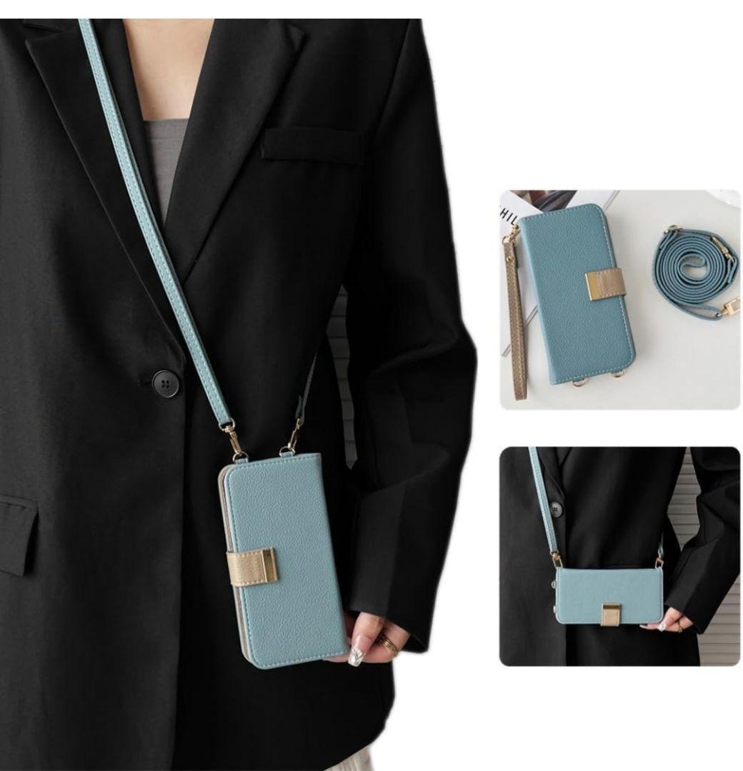 > らくらくスマートフォン F-53E 手帳型 おしゃれ ショルダー ブルー