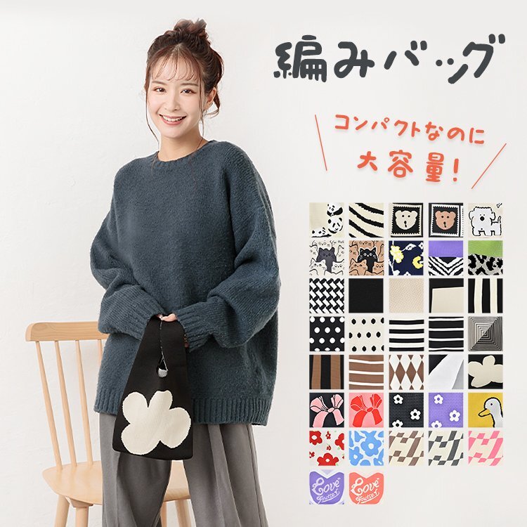 - 送料無料 ニットマルシェバッグ レディース ニットバッグ 軽量 ミニバッグ ハンドバッグ 編みバッグ サブバッグ 折りたたみ SNS大人気ap121