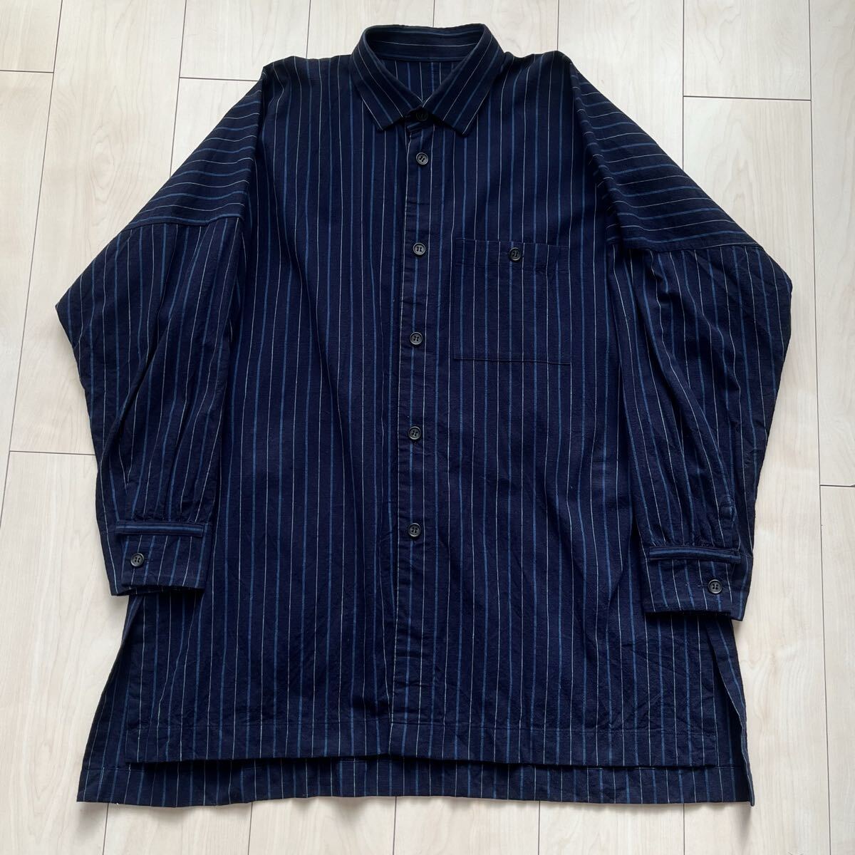 - ISSEYMIYAKEMEN イッセイミヤケメン オーバーサイズ ロング シャツ ドルマンスリーブ ストライプ 1