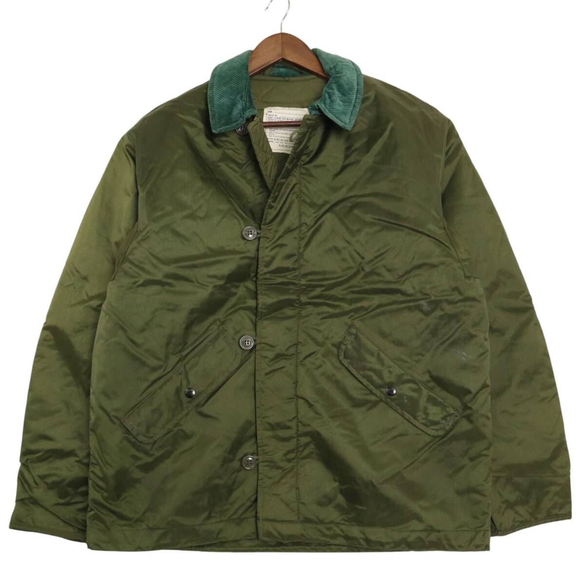 > 80年代 米軍実物 U.S.NAVY ECW ナイロン デッキジャケット ミリタリー オリーブ (メンズ MEDIUM) 中古 古着 A2294