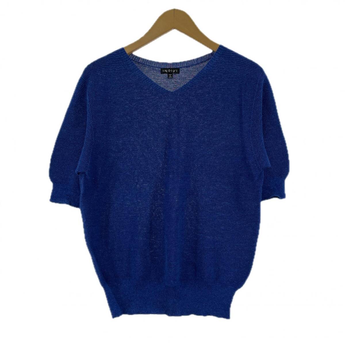 - INDIVI インディヴィ ホールガーメント Vネック ニット size38/ブルー ゆうパケットOK