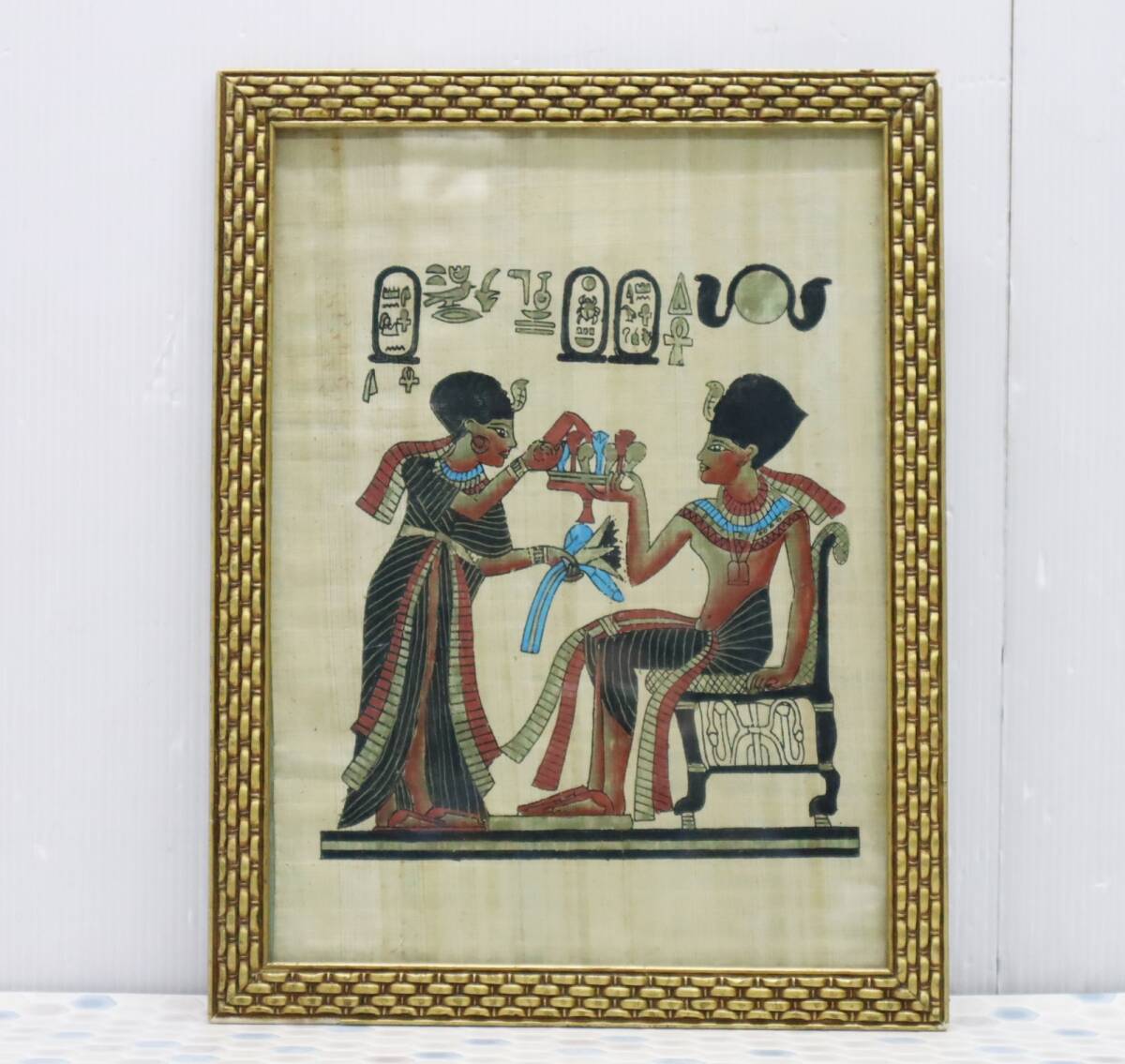 - △ アンティーク 歴史|古代 エジプト パピルス 絵画 額縁付き| 壁画 美術品|インテリア 額装 雑貨 壁掛け飾り ■O1389