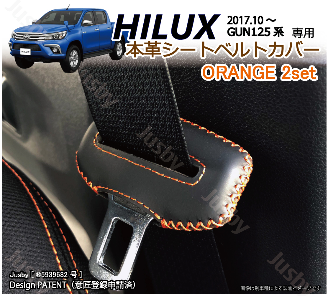 - (本皮/本革) トヨタ ハイラックス HILUX (GUN125) シートベルトカバー(オレンジ) レザーカバー 異音&傷防止 パーツアクセサリー