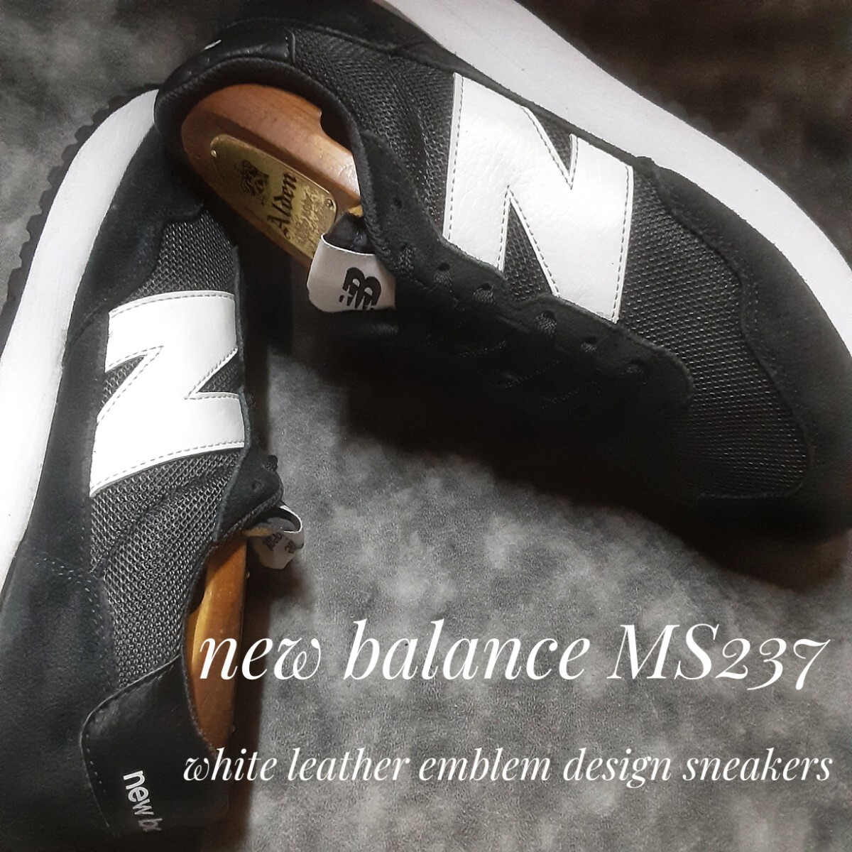 > 最値!定10340円!ホワイトレザーエンブレム!厚底チャンキーソール!ビッグNロゴ!ニューバランス MS237 スニーカー!シャドウブラック!黒白 25