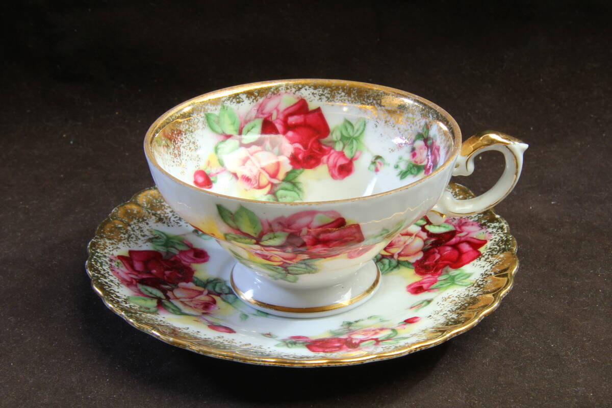 - 427 オールドジャパン カップ&ソーサ オールドノリタケと同時期 大正頃 royal Sealy 台座 金彩縁取り 薔薇絵柄
