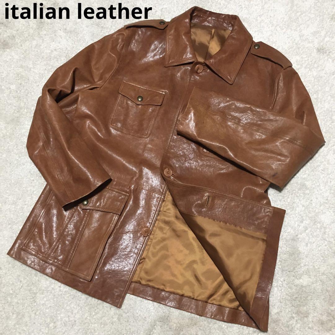 - イタリアンレザー シャツジャケット m-65 ブラウン