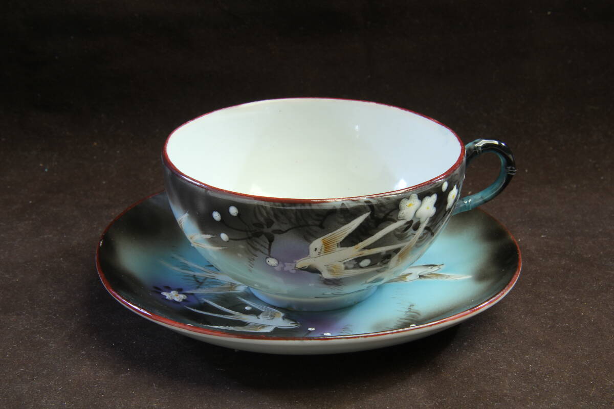 - e345b オールドジャパン カップ&ソーサ 昭和初期 燕の絵柄が和風な c&s