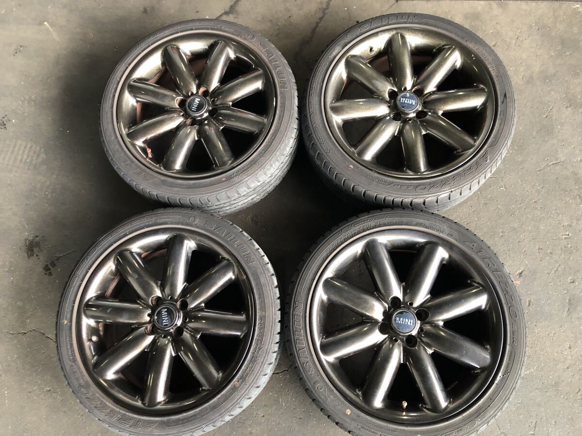 > BMW MINI ミニ クーパーS アルミ 17インチ 4本セット 傷、フチ擦り傷 タイヤ付 溝サイン上4mm 2021 205/45R17 キャップ 劣化