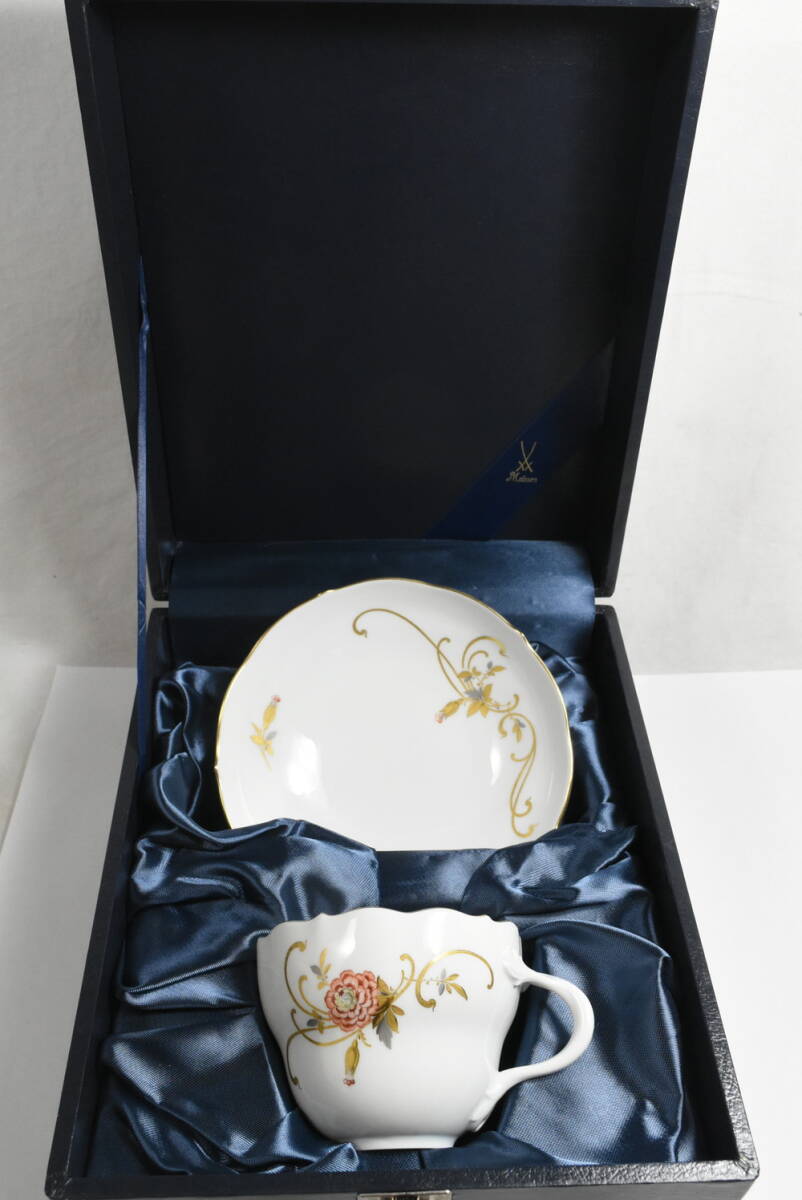 - ① Meissen マイセン 花柄 カップ&ソーサー 金彩 フラワー ブーケ 箱付き