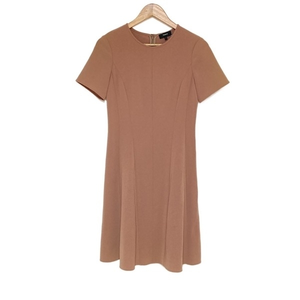 > セオリー theory サイズ2 S - ピンクベージュ レディース クルーネック/半袖/ひざ丈 ワンピース
