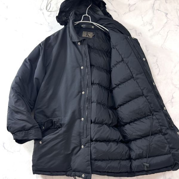 - カルバンクライン ダウンコート ダウンジャケット 肉厚 フード収納 ドローコード メンズ XL相当 黒 ブラック Calvin Klein B1620