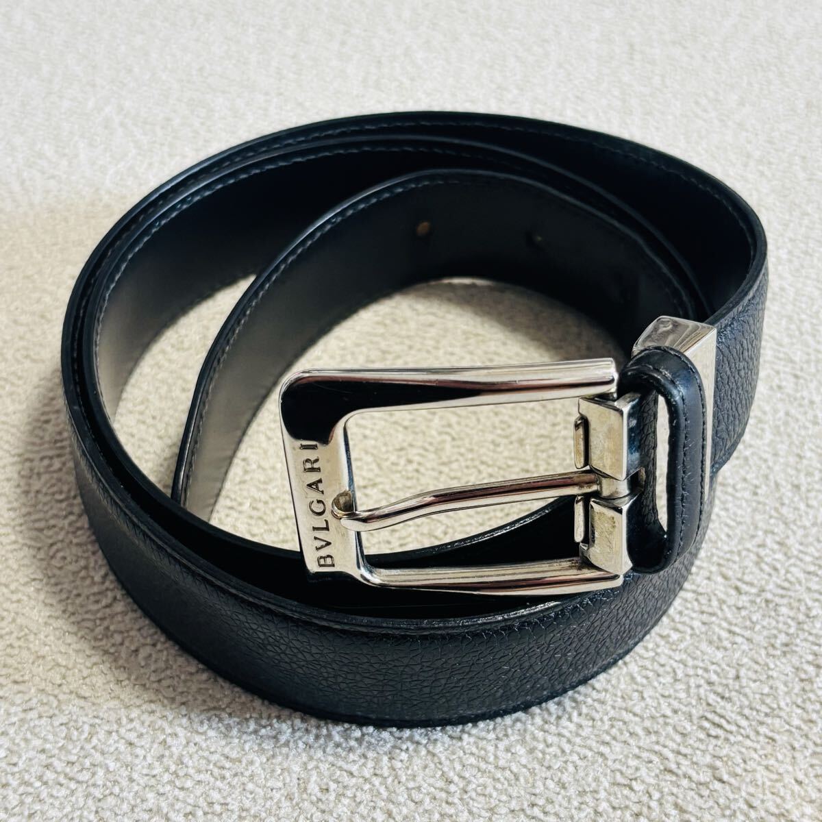 - 【高級】BVLGARI ブルガリ ベルト レザー シルバー ブラック 金具