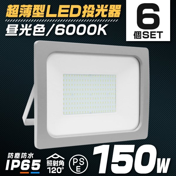> LED 投光器 150W 6個 LED投光器 昼光色 IP65 広角 120度 作業灯 照明 屋内 屋外 ライト ACコード付 PSE取得済 倉庫 照明 大量購入OK!!