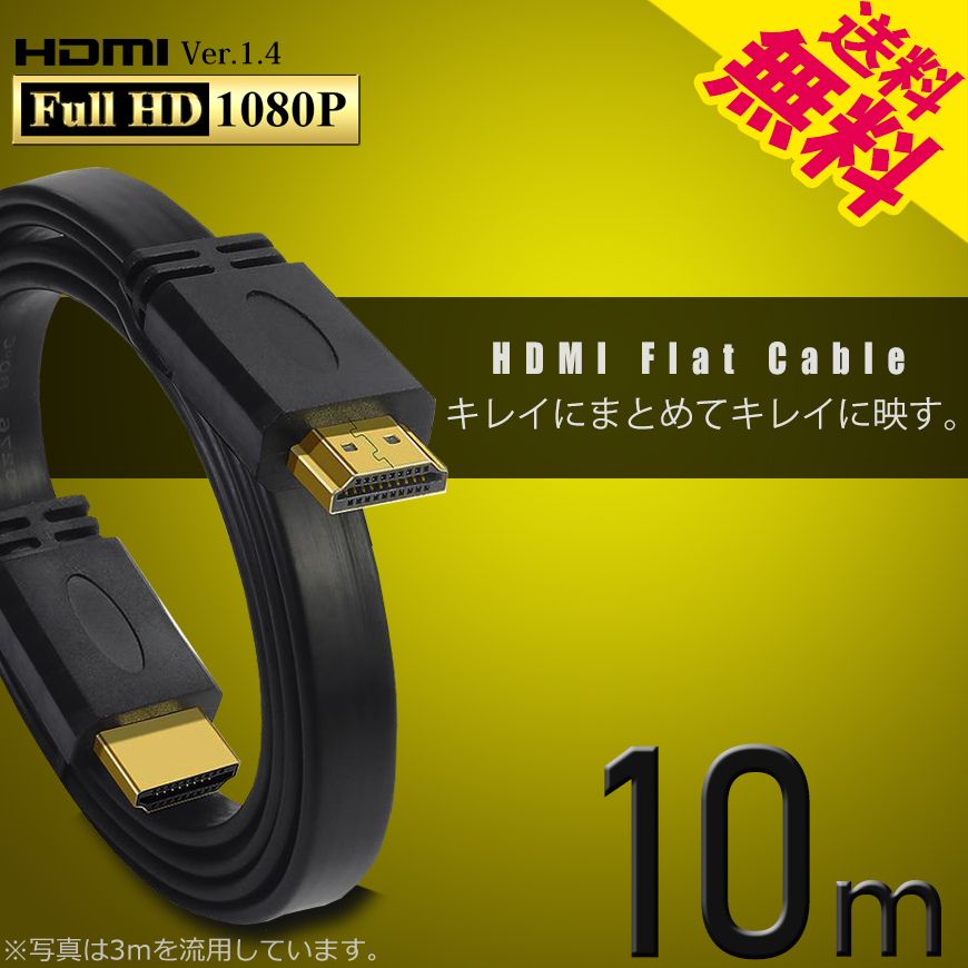 > HDMIケーブル フラット 10m 薄型 平型 Ver1.4 FullHD 3D フルハイビジョン ネコポス* 送料無料
