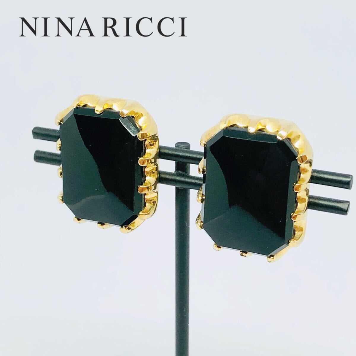 - NINA RICCI ニナリッチ イヤリング スクエア ブラック ゴールド カラー 大ぶり ヴィンテージ 刻印あり