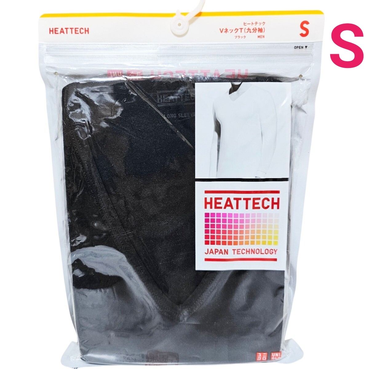 - 新品 ユニクロ ヒートテック UNIQLO HEATTECH メンズ S Vネック 9分袖 ブラック Y39