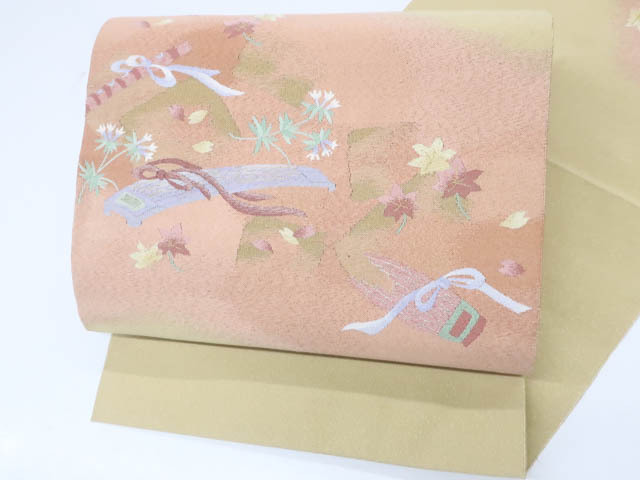 - 《古美術京松》【着物】八寸名古屋帯 太鼓柄 金糸 つづれ 開き仕立仕立 琴文 kyo7b06-125