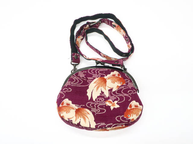 - 《京都一輝堂》リサイクル着物 和装小物 和雑貨 ガマ口ポーチ ショルダー 金魚 25w09-10711