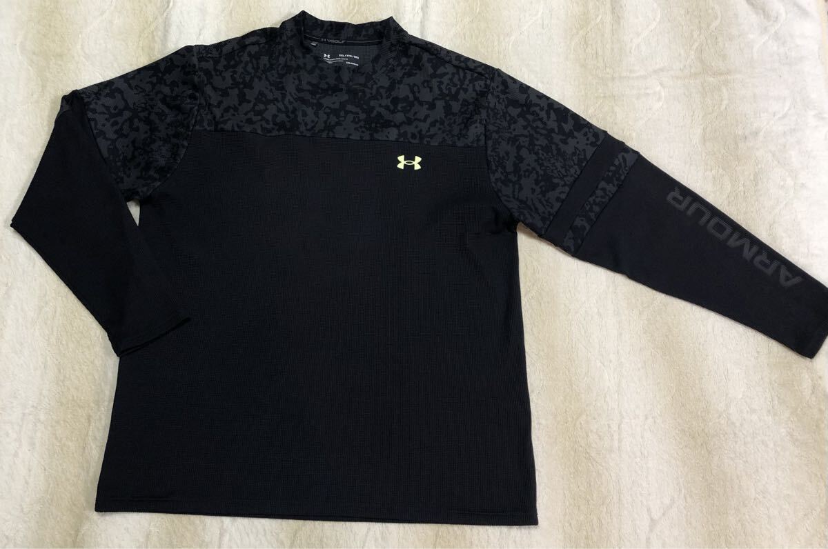 > ☆アンダーアーマー☆ビッグロゴ コールドギア ワッフル 長袖 Tシャツ XXL 黒系 カモフラ LOOSE トレーニング インナー ゴルフ 1368807