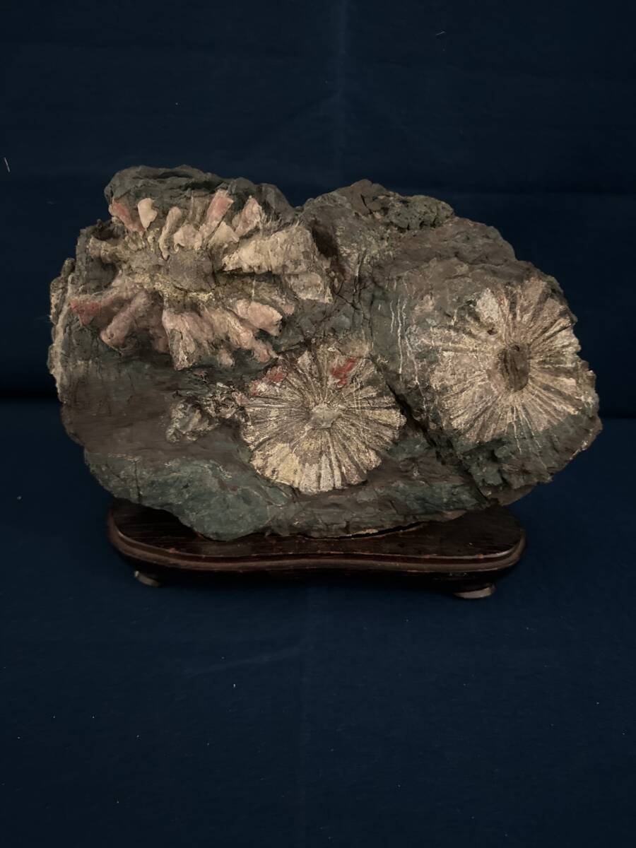 - 珍品最高品質天然菊花石 岐阜根尾川産 天然石 鑑賞石 サバ菊紋 母岩緑色赤菊メノウ化赤白緑三色石重量4kg 幅約24㎝ 高約16㎝ 奥行約1 0㎝
