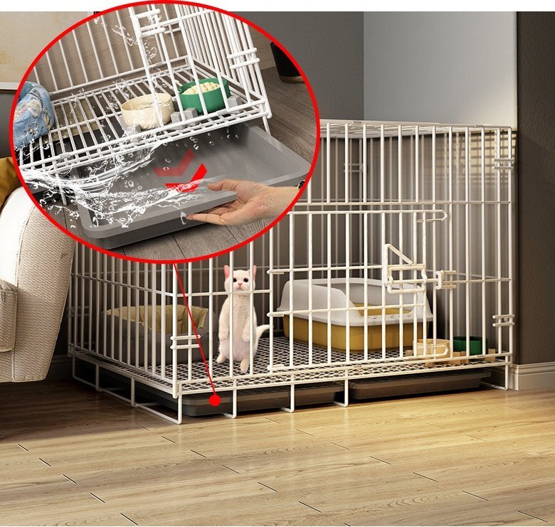 - 猫用ケージ 多頭飼い 組立簡単 折り畳み式 掃除簡単 ネコ用ゲージ コンパクト 2段 錆びない キャットハウス ホワイト