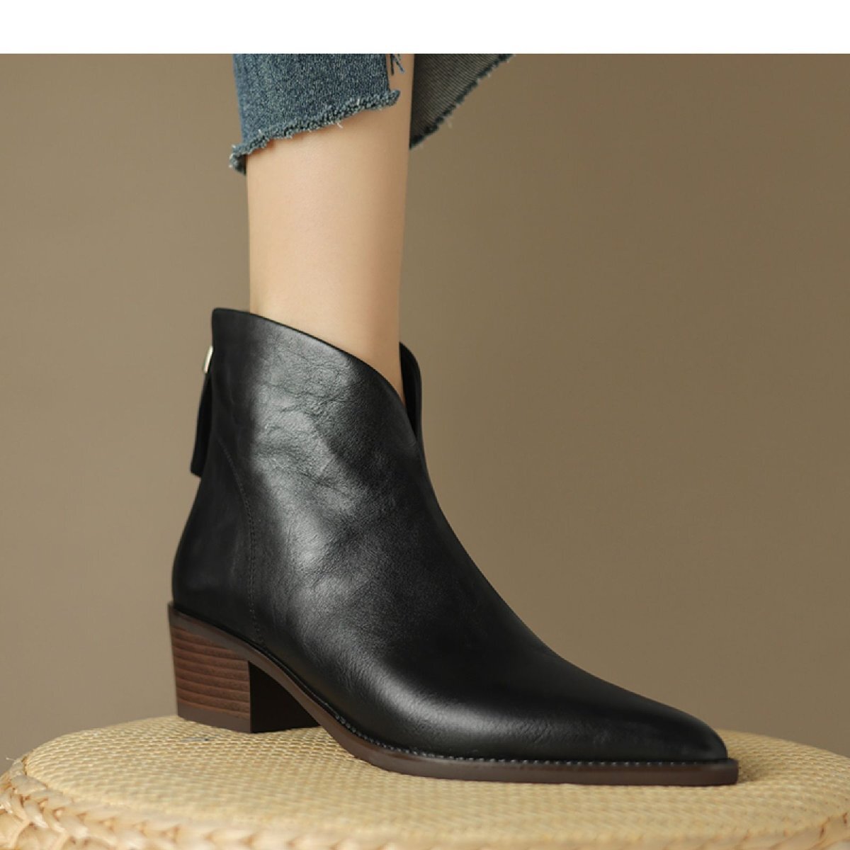 - ショートブーツ レディース ブーツ 歩きやすいストレッチ ブーツ ウエスタンブーツ くい チェルシーブーツ チャンキ ブラック23cm