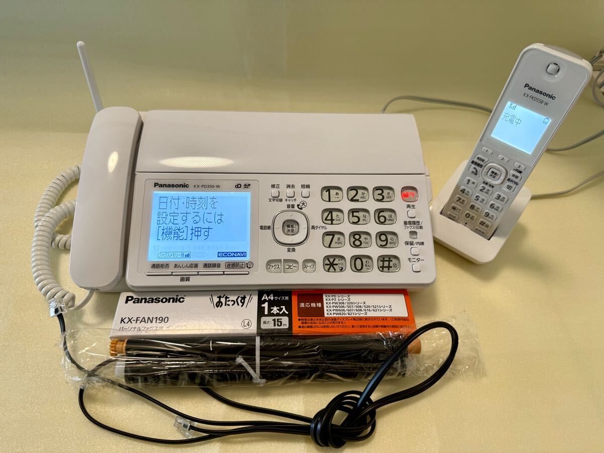 - Panasonic ★☆ パナソニック FAX電話機 親機 子機 KX-PD350-W ホワイト ファクス用インクフィルム KX-FAN190 ケーブル付き