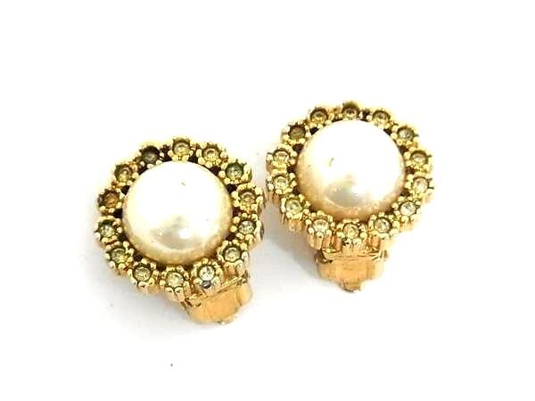 > NINA RICCI ニナリッチ ラインストーン フェイクパール クリップ式 イヤリング アクセサリー レディース ゴールド系 DK1699
