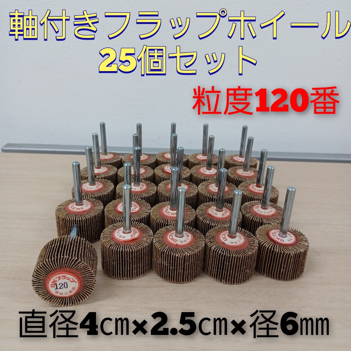 - 石⑬)軸付きフラップホイール 25個セット 植松工業 粒度120番 フラップホイール グラインダー 研磨 研削 工具 251009(F1-3