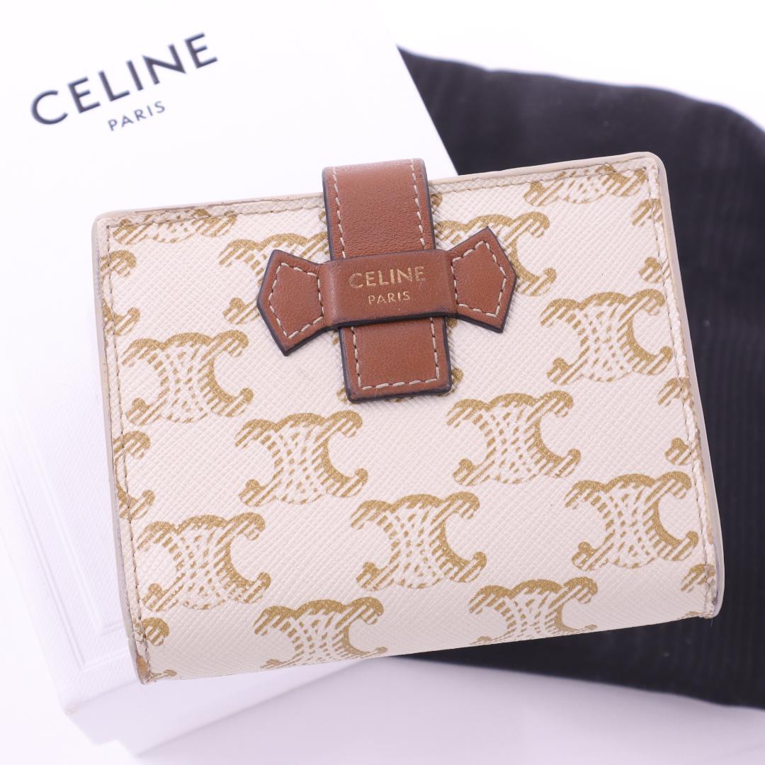 - CELINE トリオンフ スモール 二つ折り財布 FFG1201 箱・保存袋付 美品 ベージュ×ブラウン