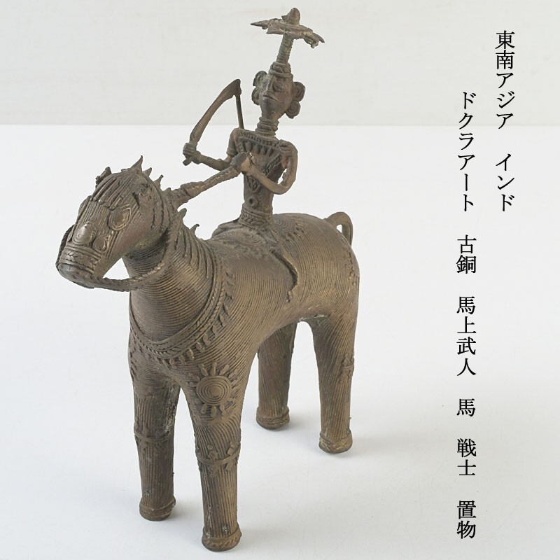 - 東南アジア インド ドクラアート 古銅 馬上武人 馬 戦士 置物 古玩 VTHR
